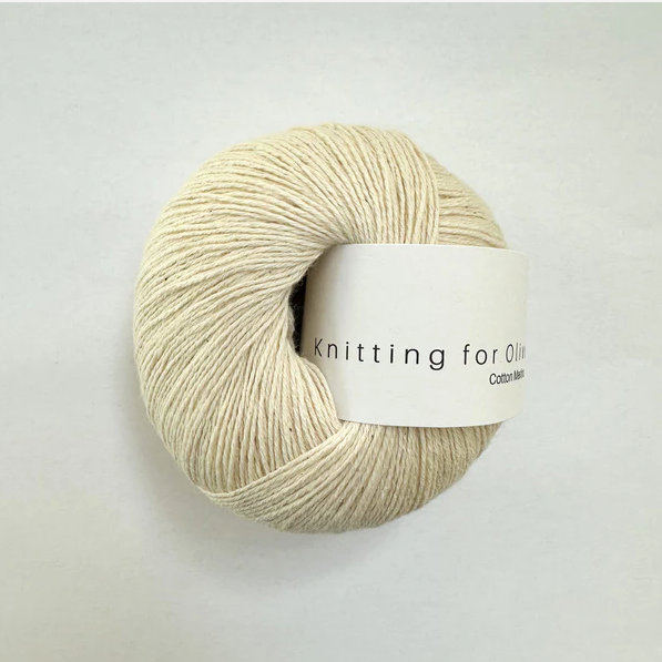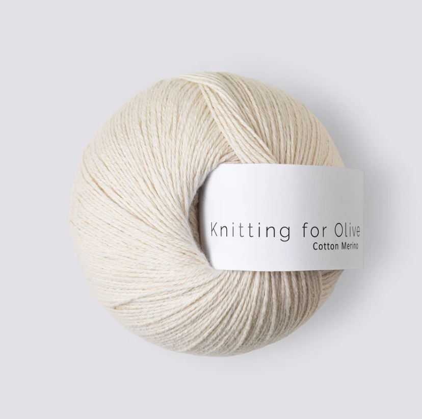 Knitting for Olive Cotton Merino er en blød og let uld-bomuldsblanding, bestående af 70 % bomuld og 30 % RWS certificeret merinould. Ulden gør garnet både blødt og elastisk, selvom størstedelen af garnet er bomuldsfibre. Garnet kan bruges hele året, og udgør et perfekt hverdagsgarn.