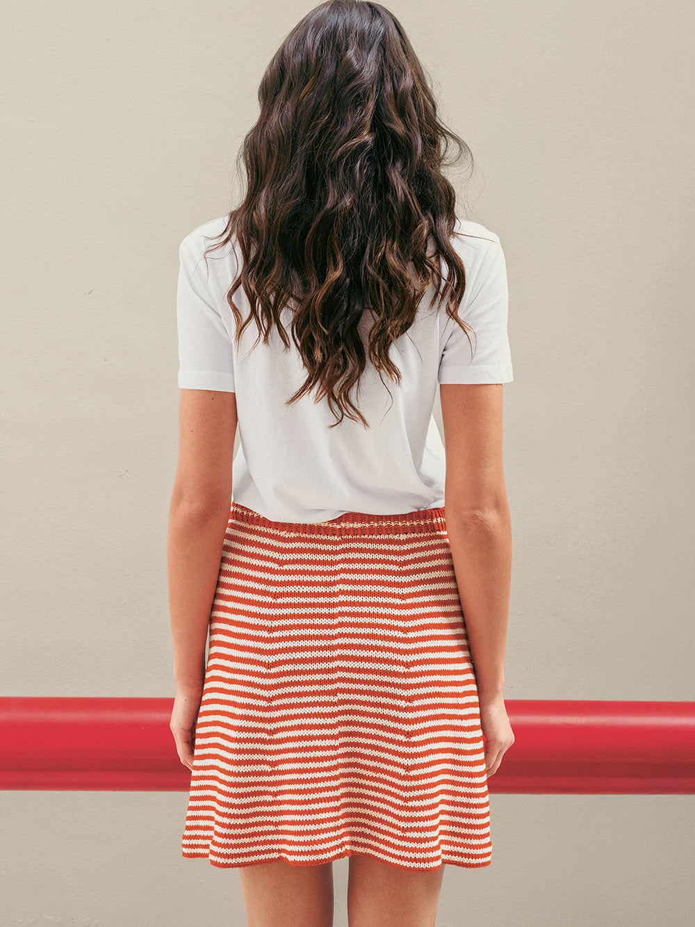 Skjørtet strikkes ovenfra og ned i LINE med stripemønster.