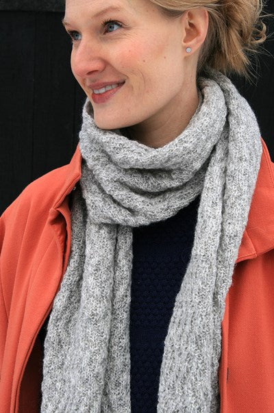 Skybrud er et fint elegant tørklæde - strikket med en enkelt tråd G-uld New Zealandsk lammeuld eller G-uld Merino.