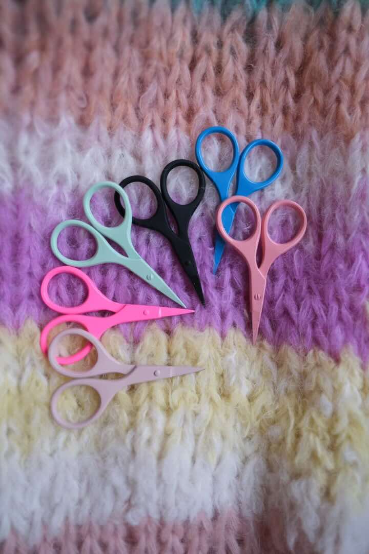 Liten strikkesaks lys pastellgrønn / mintgrønn. Rustfritt stål.
