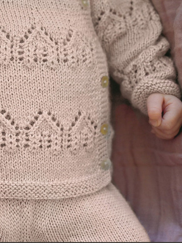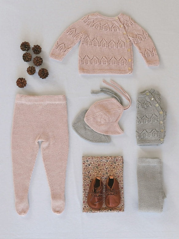 Jakke, bukse og lue strikke ovenfra og ned i Alpakka Silke.