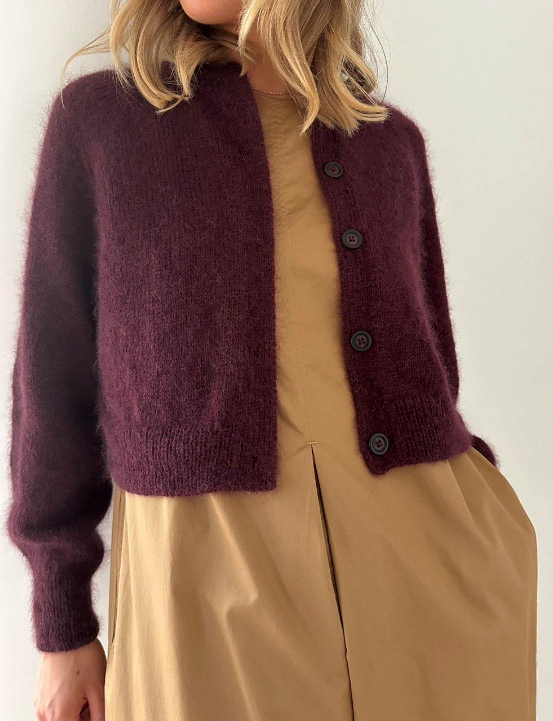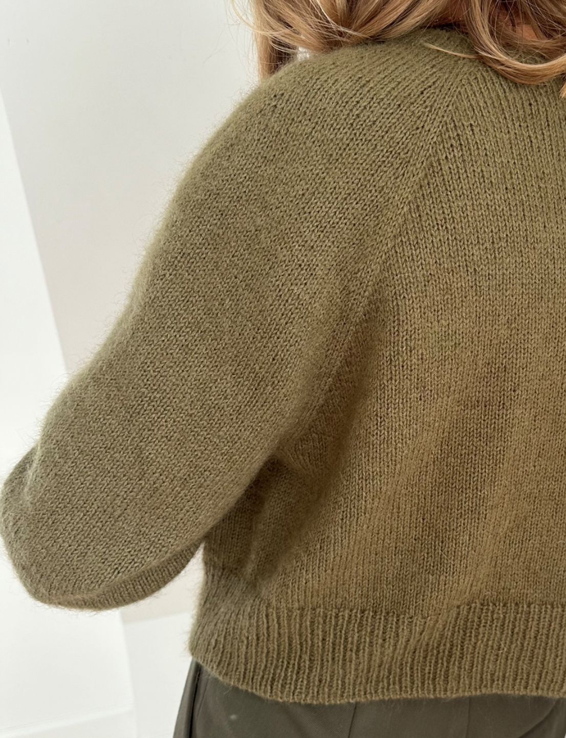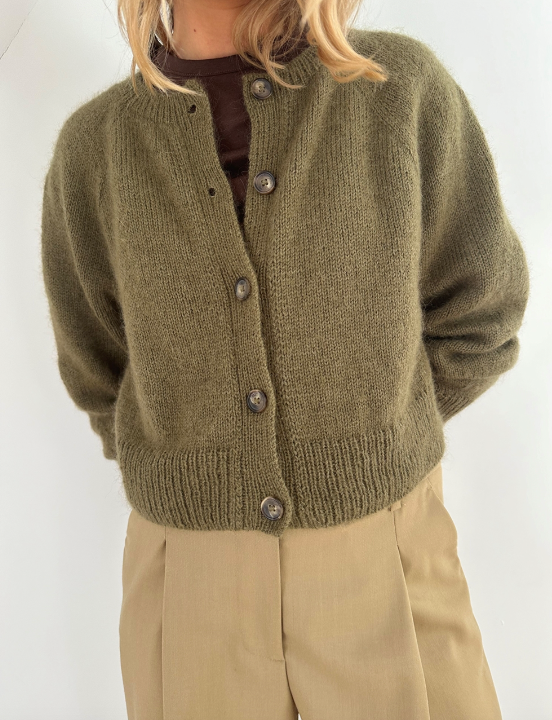Darcy Cardigan er en raglancardigan med ekstra detaljer på skulderen som gir en fin passform. Den har en dyp raglan og ermefellingene er plassert på oversiden av ermet. Dette gir en skulpturell silhuett til ermet. Forkantene og halskanten strikkes til slutt. Darcy Cardigan har en fasong som passer godt til både bukser og kjole.