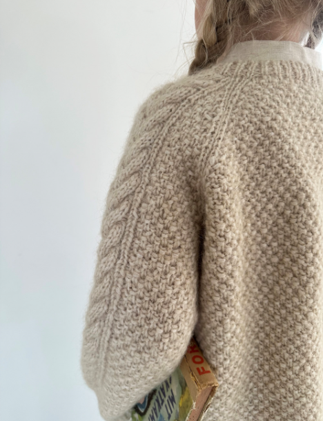 Siri Cardigan junior er et overkommelig prosjekt med fletter. De få, men velplasserte, flettene kombineres med et lite lett mønster i dobbel perlestrikk, som blir fint og fyldig i både blowgarn og i en kombinasjon av ull og mohair. Siri Cardigan junior har en flette midt på hvert erme og to fletter på hvert forstykke. Ryggen strikkes utelukkende i dobbel perlestrikk. Du kan finne relevante videoer til denne oppskriften nederst på siden.