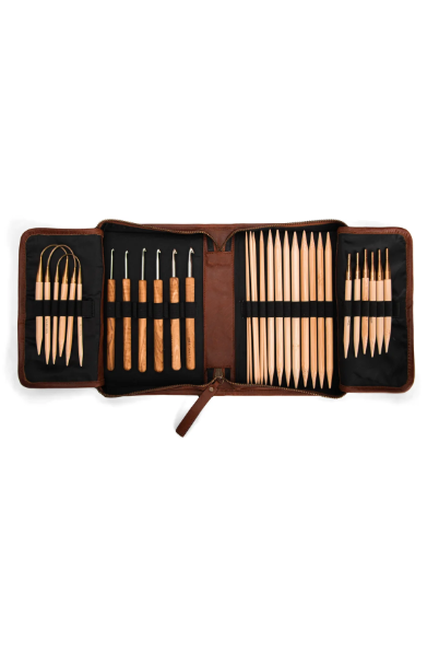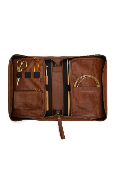 Effi Projektetui er både funktionel og dekorativ. Mappen er håndlavet, fremstillet i ægte eksklusivt kvalitetslæder, som kun vil blive smukkere med årene. Med fine detaljer og praktiske lommer gør Effi det let som en leg at tage dine ting med på farten. Mappen lukkes med en praktisk lynlås og bruges til opbevaring af strikke-, hækle og/eller broderitilbehør.