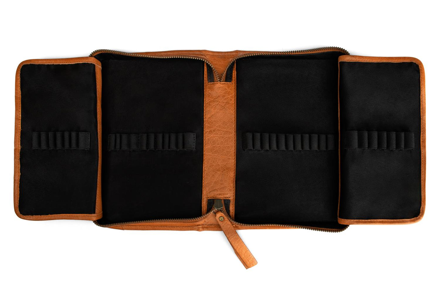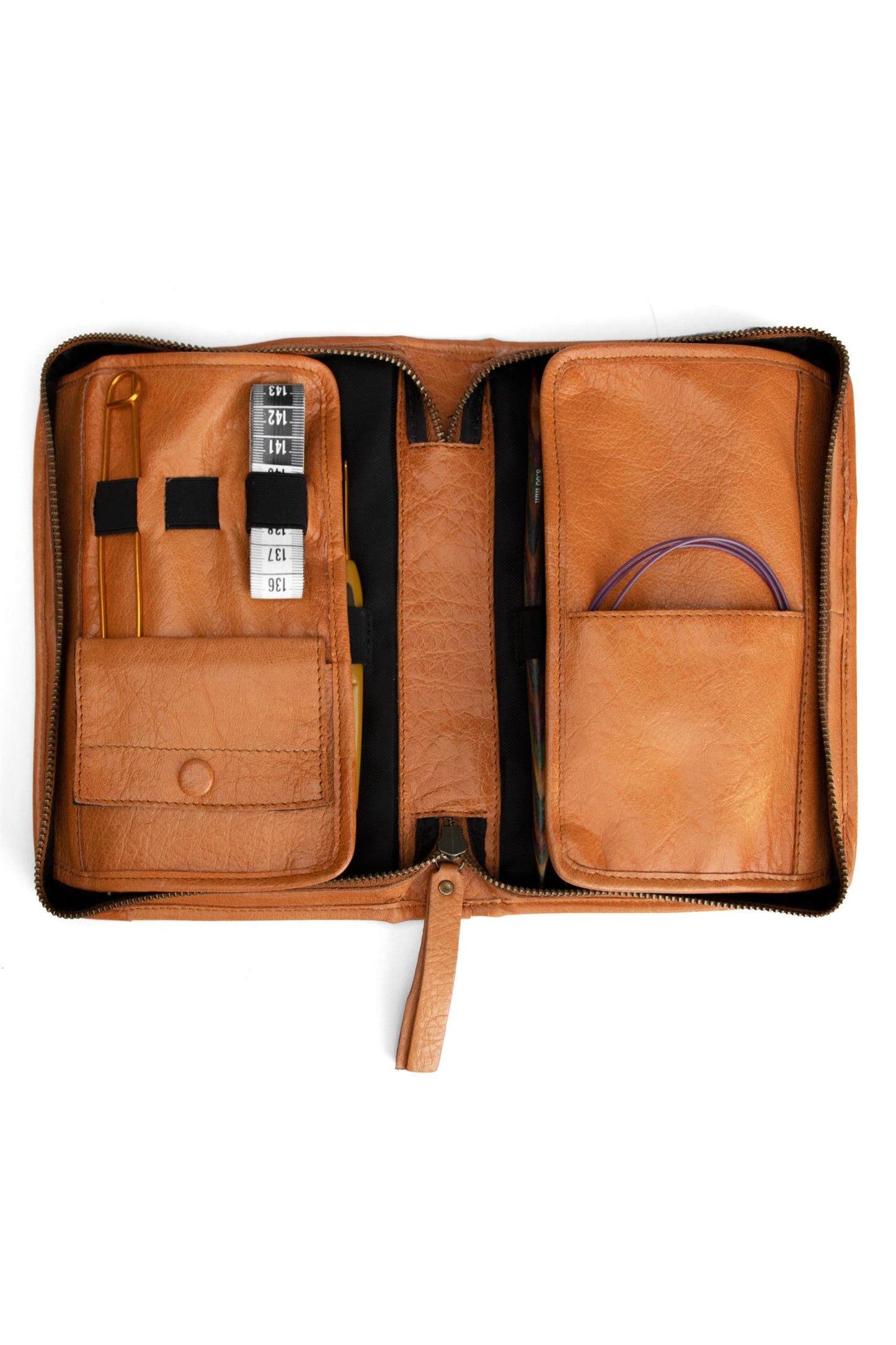 Effi Projektetui er både funktionel og dekorativ. Mappen er håndlavet, fremstillet i ægte eksklusivt kvalitetslæder, som kun vil blive smukkere med årene. Med fine detaljer og praktiske lommer gør Effi det let som en leg at tage dine ting med på farten. Mappen lukkes med en praktisk lynlås og bruges til opbevaring af strikke-, hækle og/eller broderitilbehør.