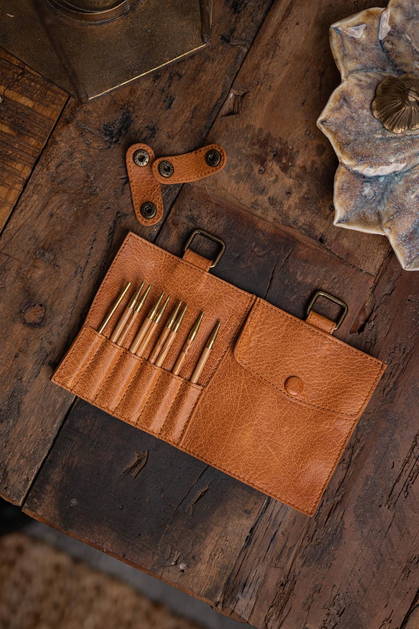 This beautiful leather case combines style and practicality. The Carita B has room for your interchangeable needles. The case is secured with two round metal rings that can be attached to the Carita case.