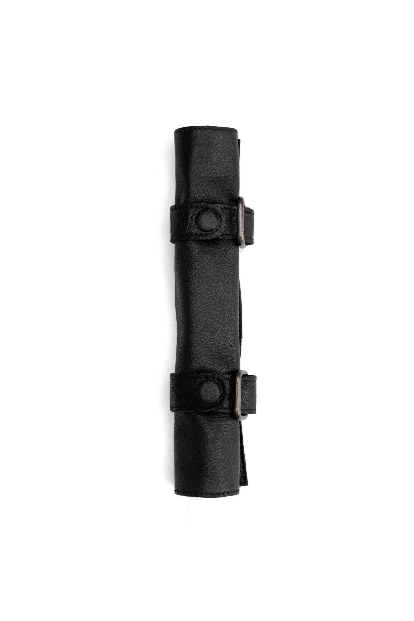 This beautiful leather case does not compromise on style or practicality. The case is secured with two round metal rings that can be attached to the Carita case.