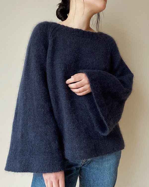 Joo Sweater er en romslig genser inspirert av hanbok, Koreas nasjonaldrakt. Den som strikkes ovenfra og ned med raglanøkninger, og det strikkes vendepinner i nakken for å danne halsutskjæringen. Ermene strikkes i glattstrikk samtidig som det økes jevnt, noe som gir den vide passformen. Ermer og bol avsluttes med en brettekant og glattstrikk som brettes inn og sys eller strikkes fast til slutt.