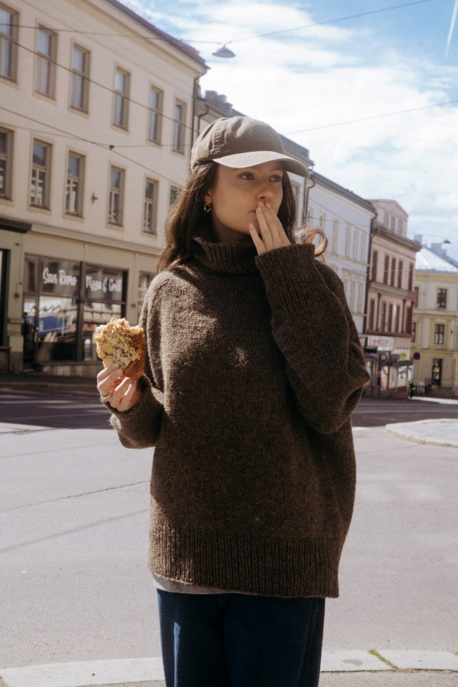 Heia Raglangenser er en tykk og superenkel glattstrikket genser med oversized passform, høy brettehals og kanter i ribbestrikk. Den strikkes rundt, ovenfra og ned. Først strikkes halsen rundt i ribbestrikk. Videre strikkes det i glattstrikk og økes masker fordelt på fire punkter for å forme et bærestykke i klassisk raglanstil. Når bærestykket er ferdig deles maskene opp mellom bol og ermer. Disse strikkes så ferdig hver for seg i glattstrikk og avsluttes med kanter i ribbestrikk. Heia-serien er en samling oppskrifter laget med tanke på den helt nye strikkeren. Plagget er enkelt å strikke og det brukes ikke forkortelser i oppskriften. Alle teknikker er beskrevet ekstra detaljert og du får noen gode strikketips underveis!