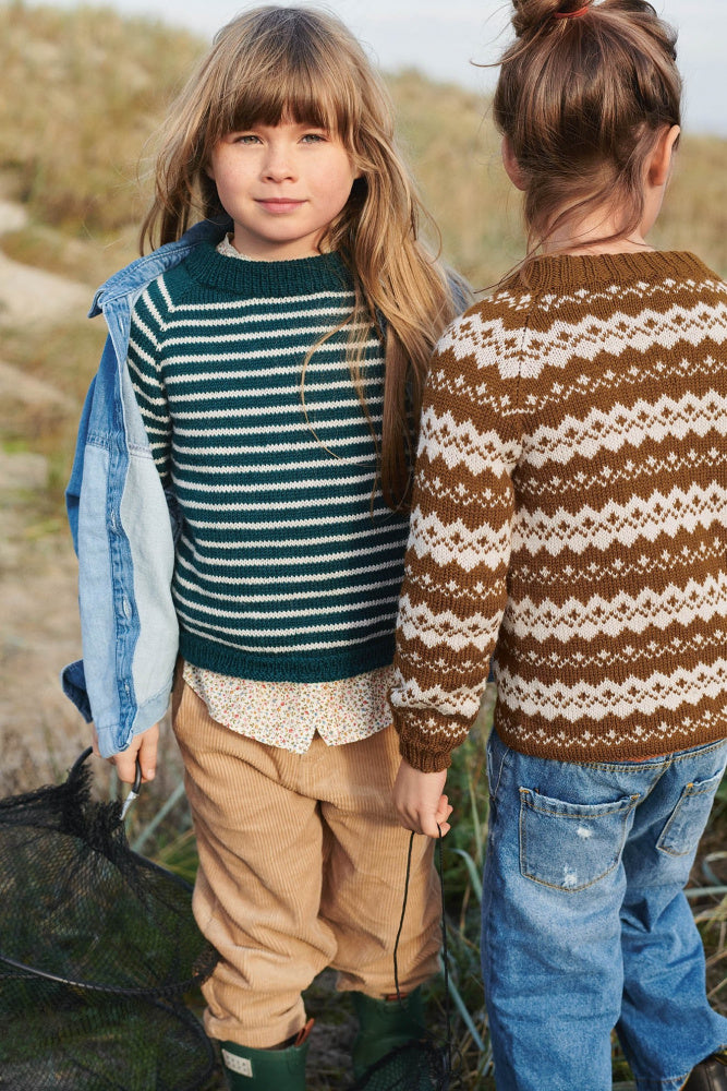 I denne Sisu-kolleksjon har Sandnes latt seg inspirere av klassikere som arangenseren med masser av flettemønster. Mønsterstrikk i fine farger og en slipover med boblemønster. Sisu passer til barns hverdagsliv. Garnet har en strikkefasthet på 27 masker på 10 cm, en behagelig tykkelse, som passer både innendørs og under yttertøy. Alt passer like godt til både jente og gutt.