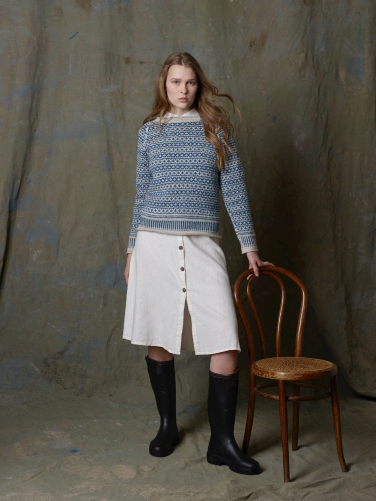 Kolleksjonen i dette heftet er fylt av vakre mønstringer i duse og delikate fargekombinasjoner. Rauma har samlet sammen noen av de fineste mønstringene fra sitt oppskriftsarkiv, bearbeidet dem og brukt dem på nye plagg med moderne fasonger. Her finner du jakker og gensere til dame, herre og barn i størrelse 2-12 år. Plaggene er stirkket i 3 trådsstrikkegarn som Rauma spinner selv på sin fabrikk i Romsdalen.