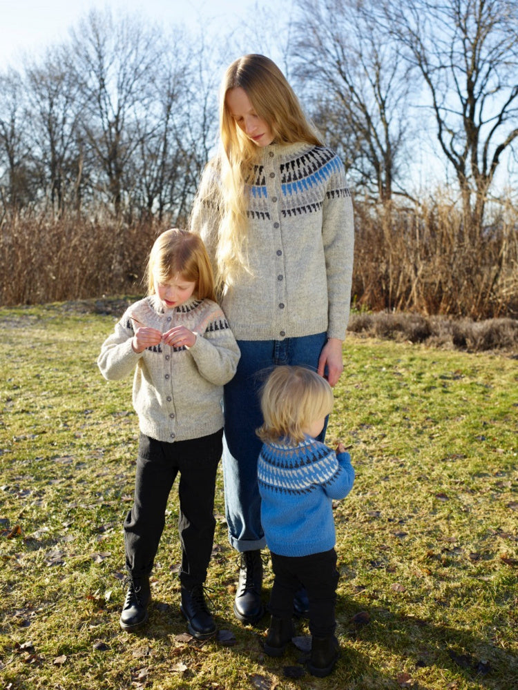 Plaggene er strikket i finull, som er 100% norsk ull, spunnet på Raumas fabrikk i Romsdalen. Det gir lette, luftige og bruksvennlige plagg som blir mykere og vakrere med tiden.