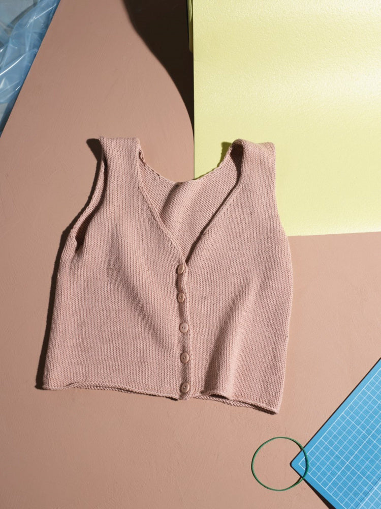 Sammen med heftet har jeg utarbeidet 6 nye farger i Petunia og Pelini. Dette er to garntyper som jeg har jobbet mye med tidligere. Begge kvalitetene passer til alle oppskriftene. Jeg liker Petunia med sin glans og fylde, og Pelini med sitt mer rustikke uttrykk og tørre følelse som er svært behagelig på varme sommerdager."