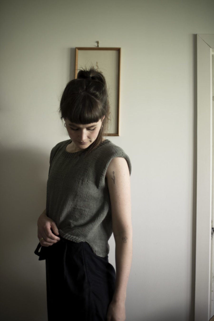 Luftig sommertopp light er en lettere versjon av originalen Luftig sommertopp, og strikkes med enkel tråd på tynnere pinner. Den er litt kort. Tanken er at den kan brukes på varme sommerdager over en kjole for å skjerme skuldrene, eller til høye skjørt og bukser. Den strikkes nedenfra og opp, har splitt i siden, og er litt lengre bak enn foran. Det plukkes opp m til helt korte ermer, og til ribbekant rundt halsen. Og, om du vil ha den litt lengre, så gjør du jo bare det.