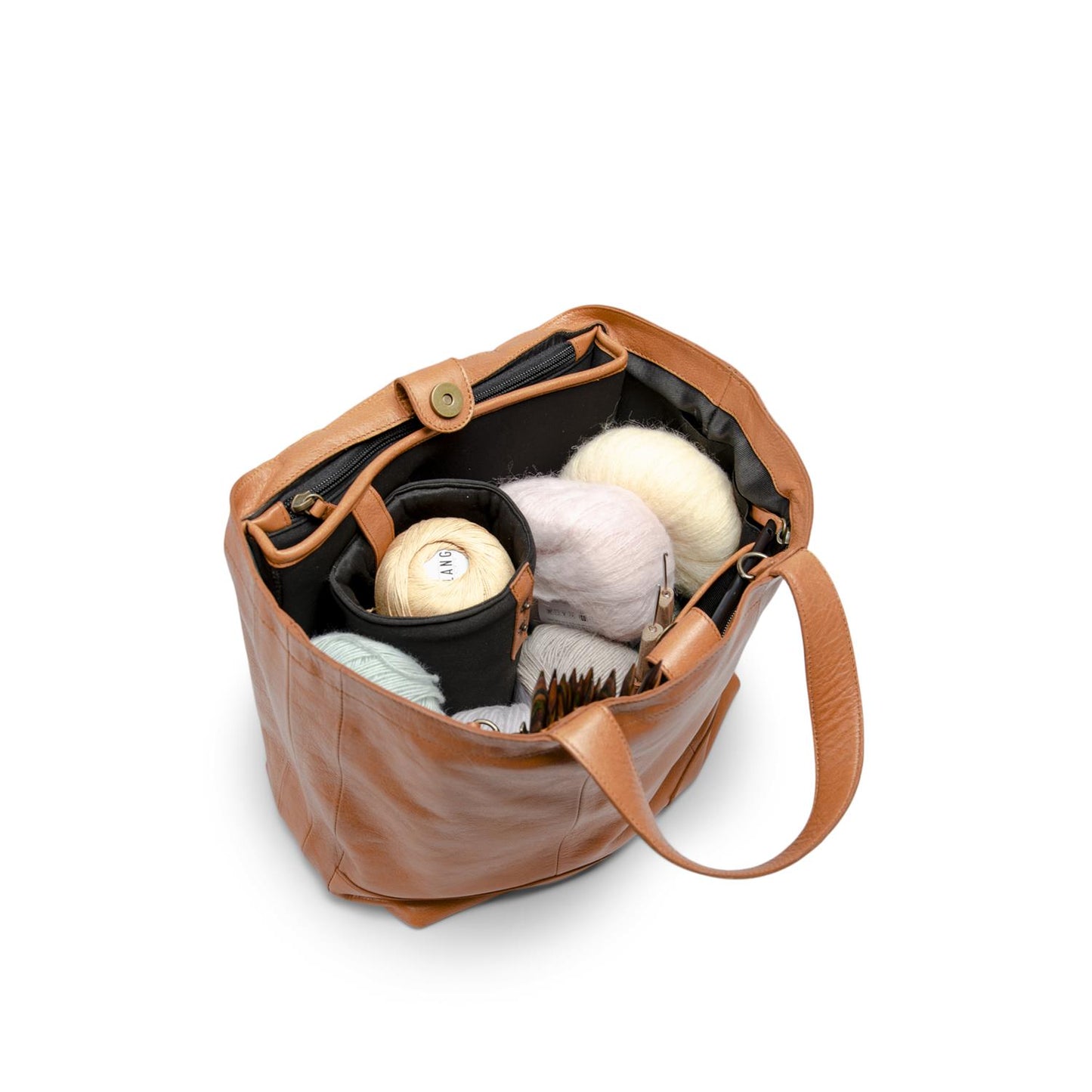 Håndlavet læder strikke shopper, - Din perfekte strikke makker