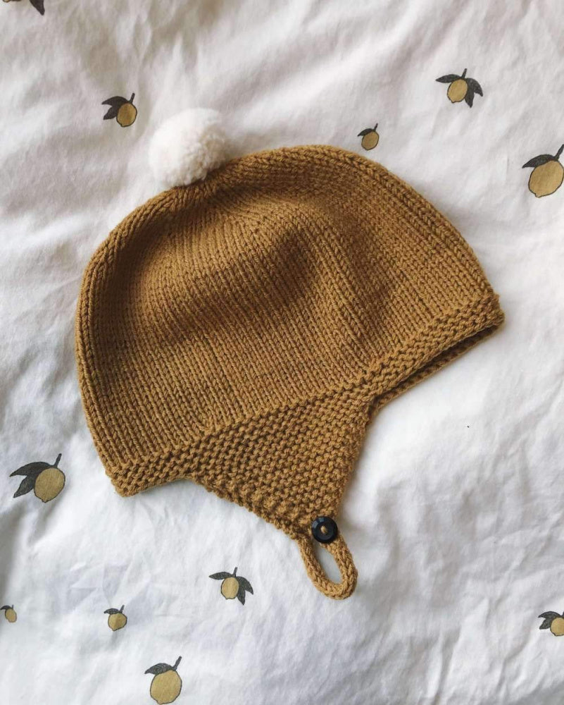 Alberts Pilotlue strikkes rundt på strømpepinner ovenfra og ned. Øreklaffene strikkes frem og tilbake til slutt. På toppen monteres en dusk.