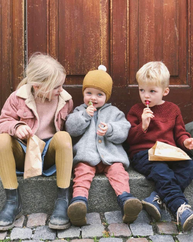 Materiale: 50 (50) 50 (50) g dobbel tråd Sunday fra Sandnes Garn (50 g = 235 m) eller dobbel tråd Anina fra Filcolana (50 g = 210 m). En rest garn til dusk. 1 knapp.