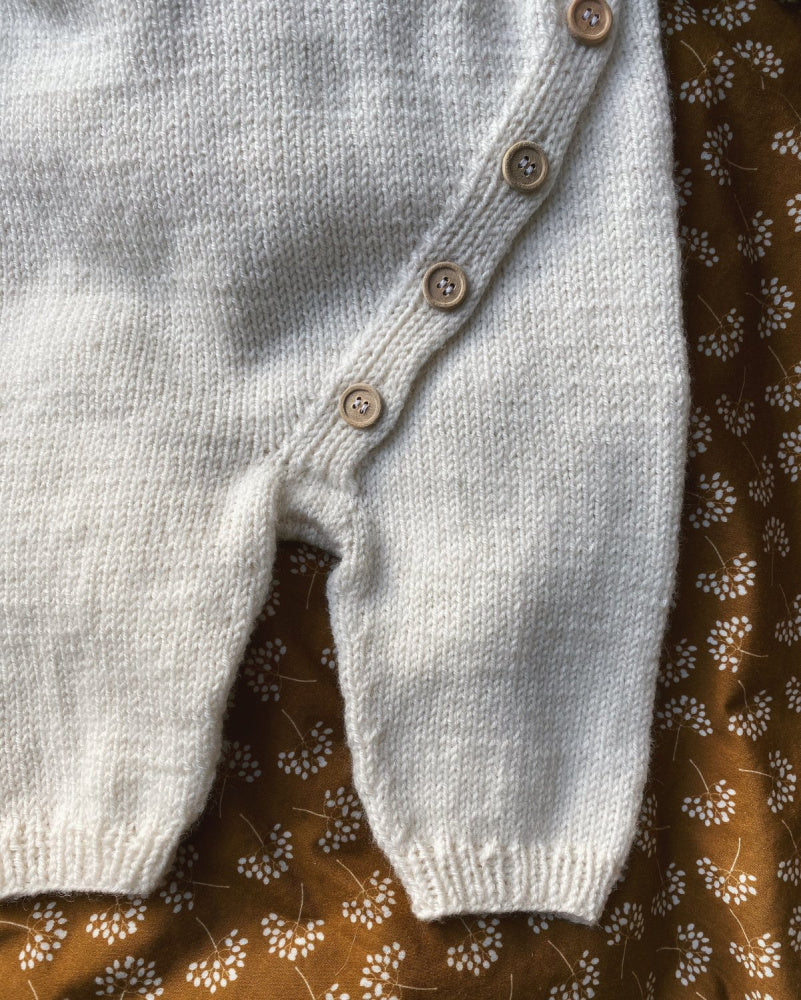 Materialer: 100 (100) 150 (150) 150 (200) 200 g Sunday fra Sandnes Garn (50 g = 235 m), 9 (10) 10 (11) 11 (12) 13 knapper (ø 12-13 mm)
