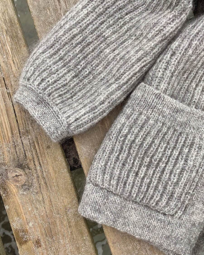 Materialer: 800 (850) 900 (950) 950 (1000) 1000 (1050) 1100 g Peer Gynt fra Sandnes Garn (50 g = 91 m) eller 800 (800-900) 900 (900) 900 (900) 1000 (1000) 1000 g Håndværksgarn fra Hjelholts Uldspinderi (100 g = 200 m). Bemærk, at garnforbruget kan variere hvis du strikker din jakke kortere eller længere.