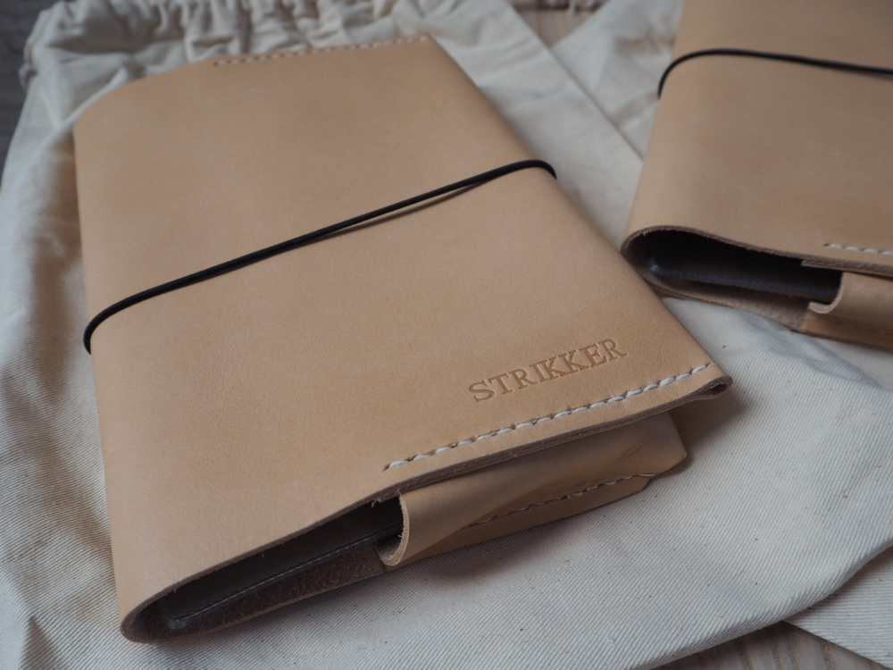Strikkeetuiene fra Sandra Askegren er håndlaget i lær, og vil derfor naturlig få en dypere farge i bruk.