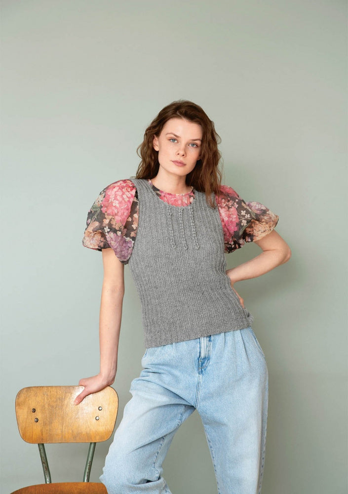 Vest eller slipover, kjært barn har mange navn. Passer til bukser, skjørt og er kjempefint over kjole. Ønsker du at vesten/slipoveren skal være ettersittende, eller vid? Skredderstrikk ditt eget plagg, ta mål på et plagg du liker, og vel den størrelsen som ligger nærmest. Da får du en vest som passer din kropp.