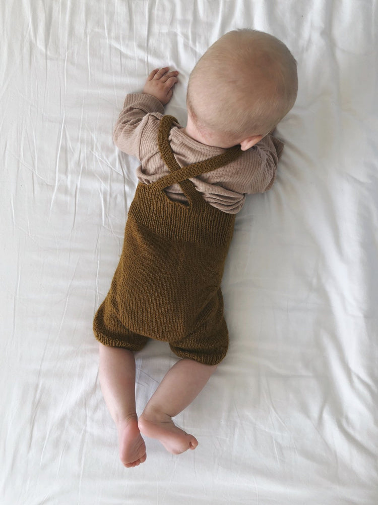 Willums Sommerselebukser strikkes nedenfra og opp. Bena strikkes på strømpepinne eller med magic loop, og bolen strikkes med magic loop. Smekken strikkes i ribbestrikk, og selene krysses i bruk.