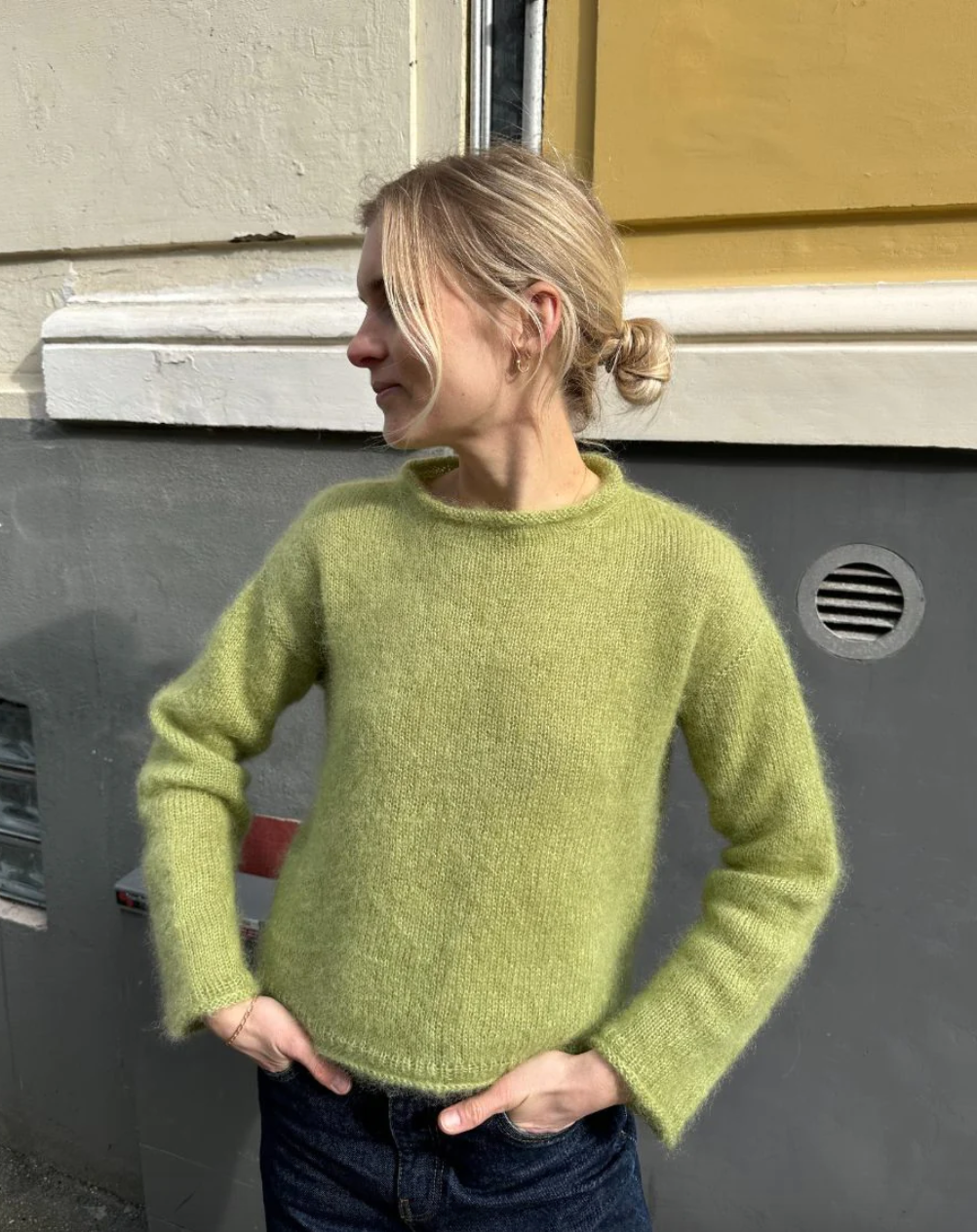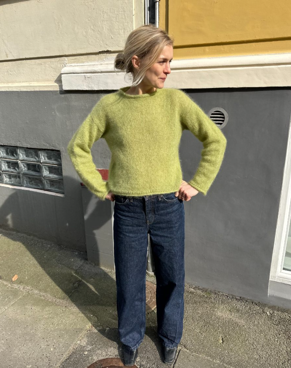 Den grønne Cloud Blouse er strikket i Silk Mohair fra Isager i farge 57.