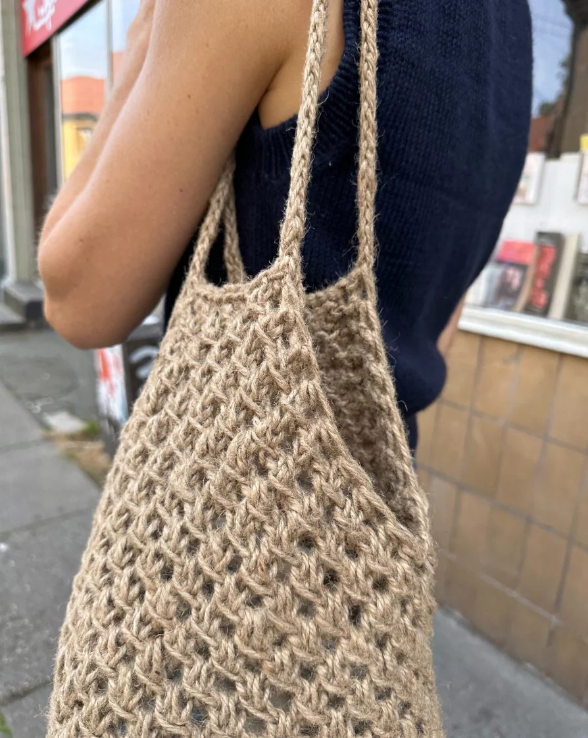 Coast Bag strikkes fra bunnen og opp. Bunnen er flat og strikkes på strømpepinner, mens veskens sider strikkes i hullmønster på rundpinne. Øverst deles vesken i to, og hver del strikkes frem og tilbake med fellinger. Vesken avsluttes med to strikkede hanker.