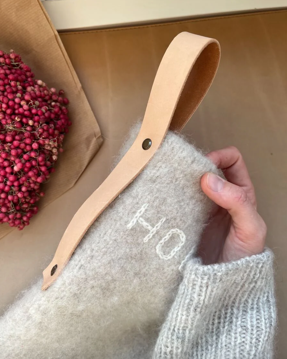 "PetiteKnit Est. 2016"- Mørkebrun - lærlabel
