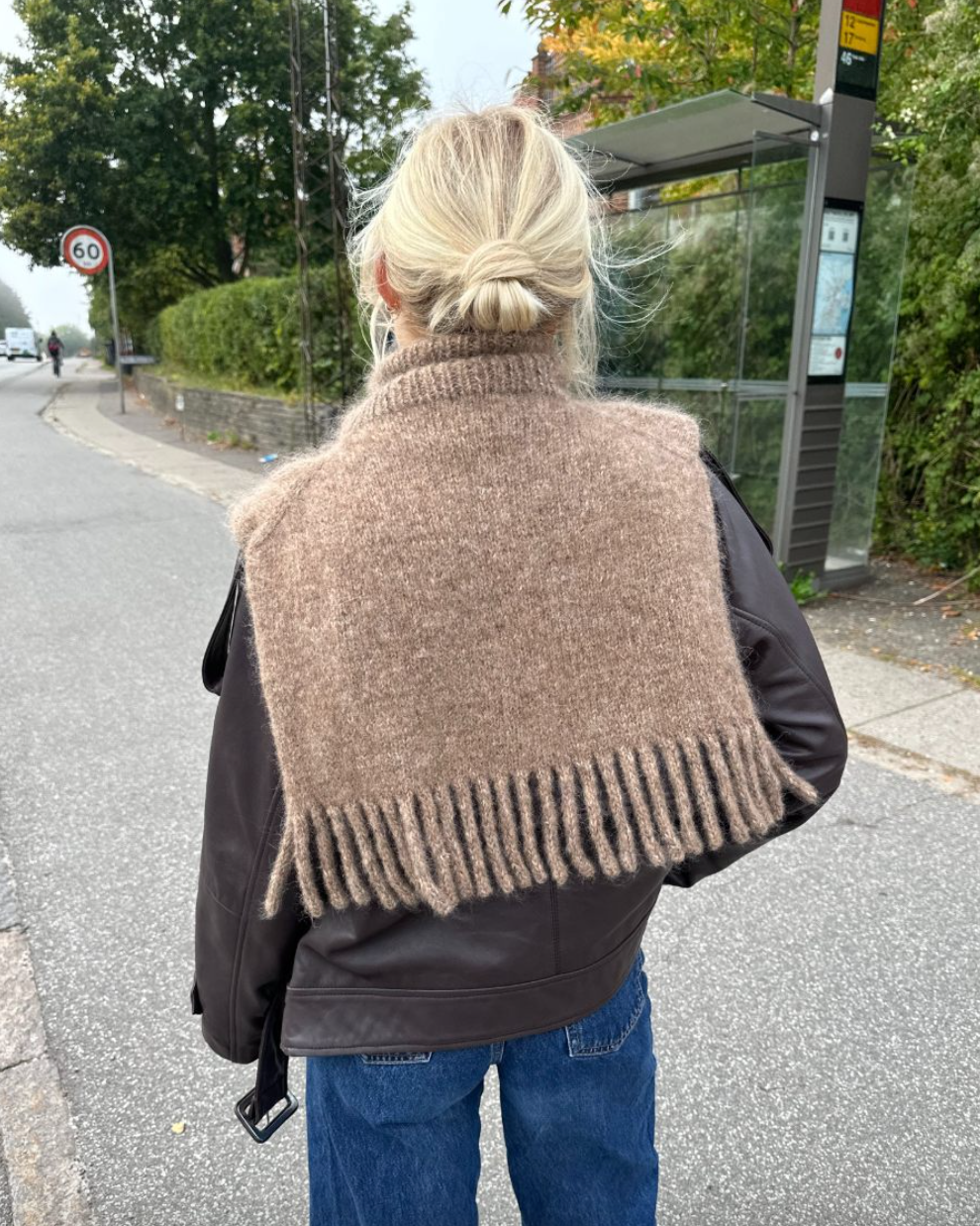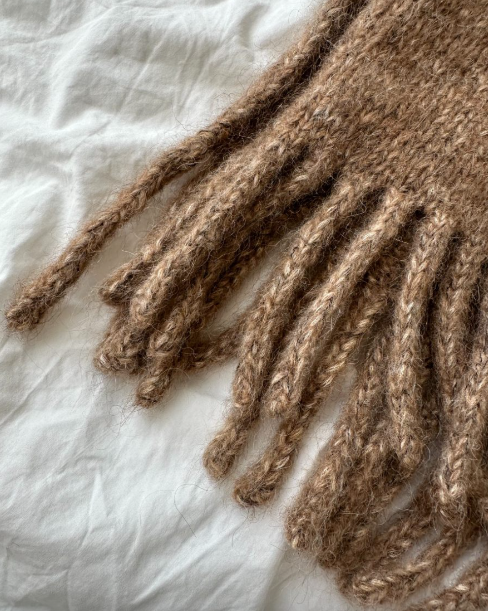 Den brune Nora Neck er strikket i Isager Soft fra Isager i farge E7S sammen med Silk Mohair fra Isager i farge 7S.