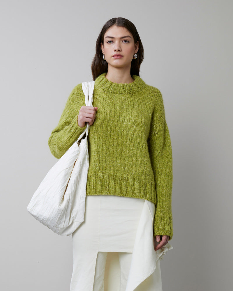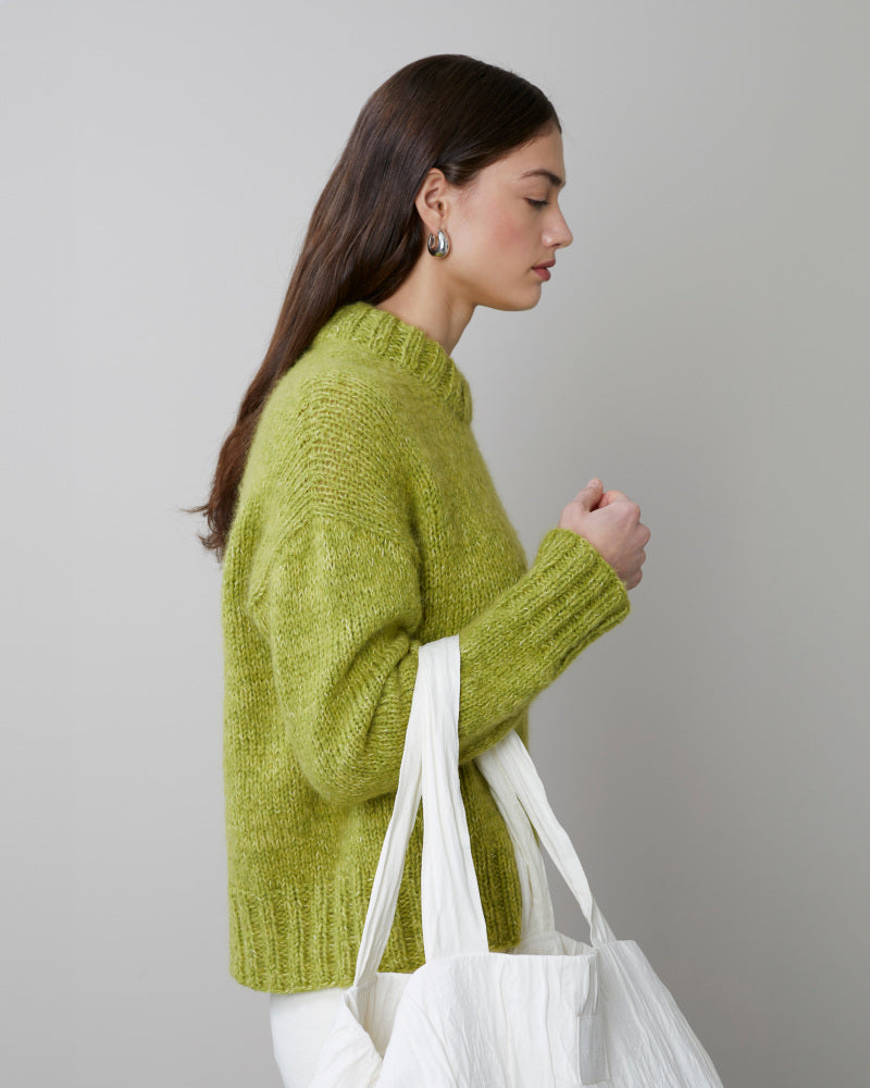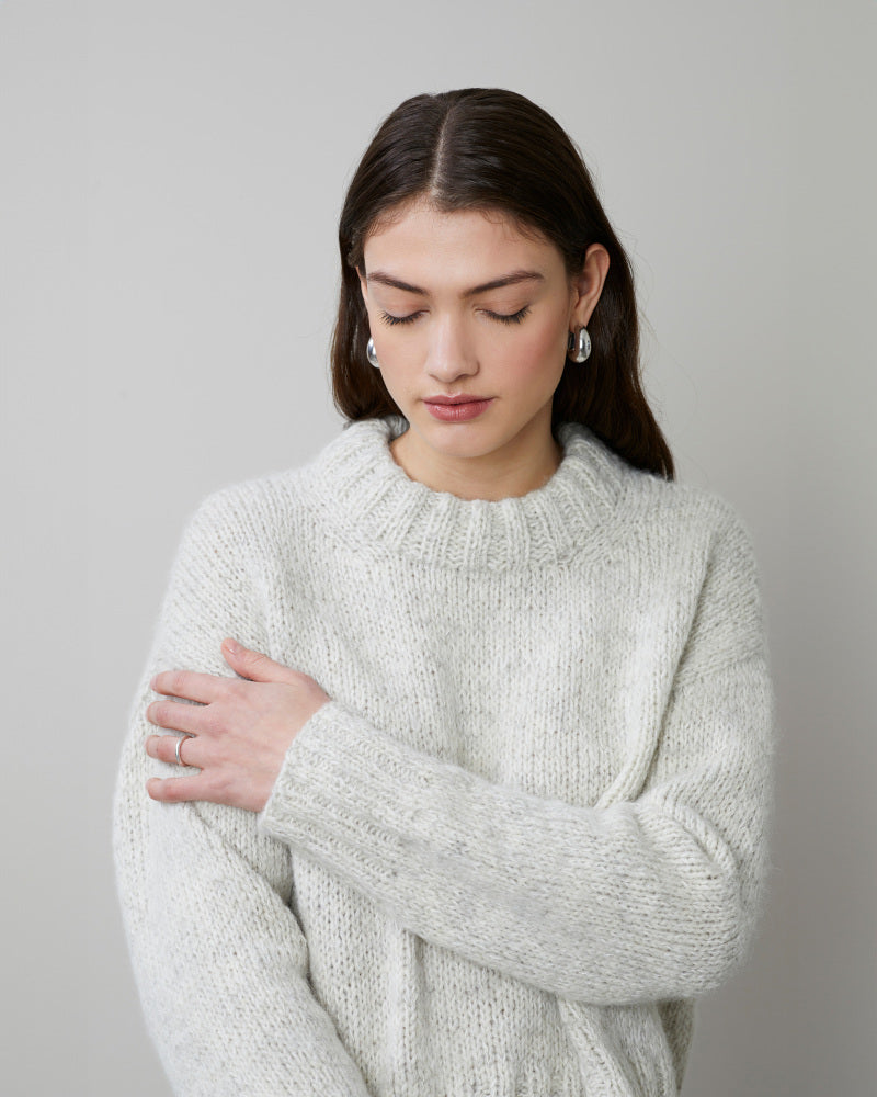 Kalamata vintergenser er en romslig, glattstrikket genser med avslutninger i 2-2-ribb og dobbel halskant. Genseren strikkes ovenfra og ned. Først strikkes bakstykket til under ermene - med vendepinner for å forme skrå skuldre. Så strikkes det opp masker langs skuldrene i hver side til forstykkene som strikkes for seg. Det strikkes vendepinner for å forme skrå skulder, og videre økes det til utringning, før forstykkene strikkes sammen midt foran. Forstykket strikkes til under ermene, så settes for- og bakstykket sammen og strikkes rundt til hel lengde. Masker til ermene strikkes opp rundt ermehullene og ermene strikkes først frem og tilbake med vendepinner for å forme ermetoppen, deretter strikkes de rundt til ønsket lengde. Til slutt strikkes det opp m rundt halsåpningen til halskant. Kanten strikkes i dobbel ribb og brettes dobbel. For en romslig fasong, velg en størrelse med brystvidde 15-25 cm større enn din egen.