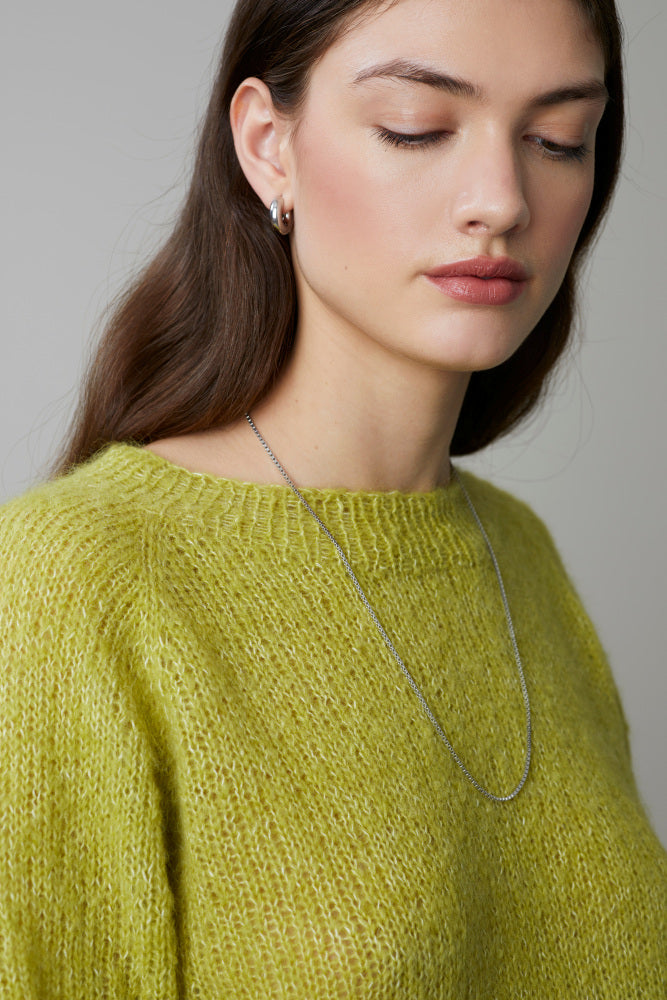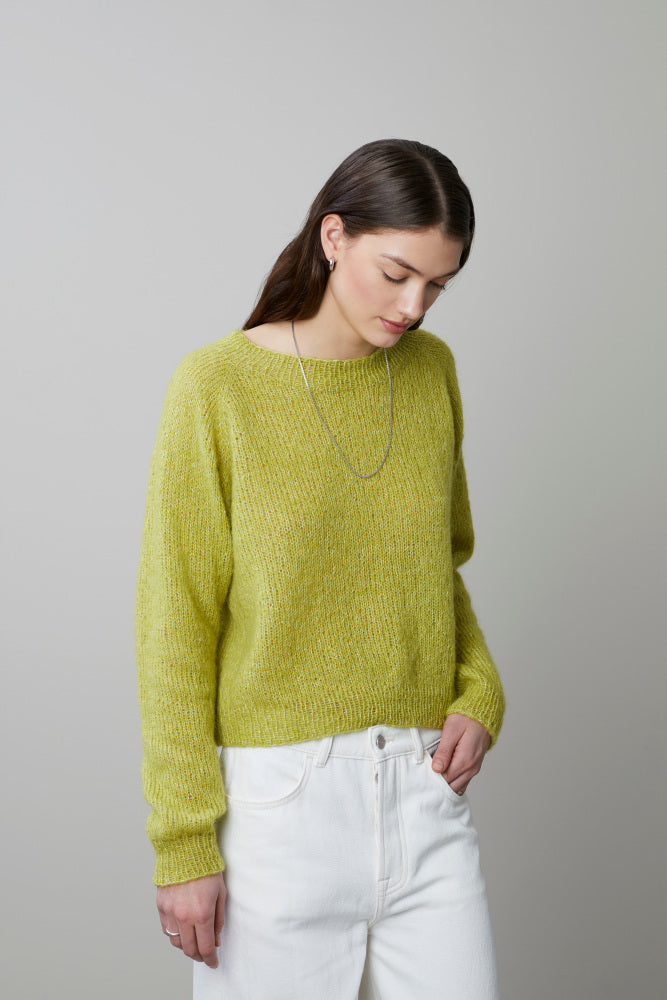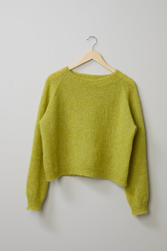 Gaya sommergenser er en enkel raglangenser som passer til det meste. Den strikkes ovenfra og ned med raglanøkninger, samtidig som halsringningen formes med vendepinner. Når bærestykket er ferdig, deles arbeidet til bol og ermer, og delene strikkes videre rundt hver for seg. Kantene avsluttes med vrangbord. Dette er den ultimate sommergenseren fordi den er meeeget lett og luftig, samtidig som den varmer godt på sene sommerkvelder. Ved valg av størrelse, vær oppmerksom på at genseren kan utvide seg noe fordi Alpakka Lin ikke har noe særlig spenst. For en avslappet passform, velg en str med 10-25 cm bevegelsesvidde.