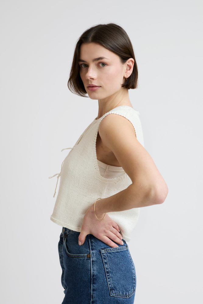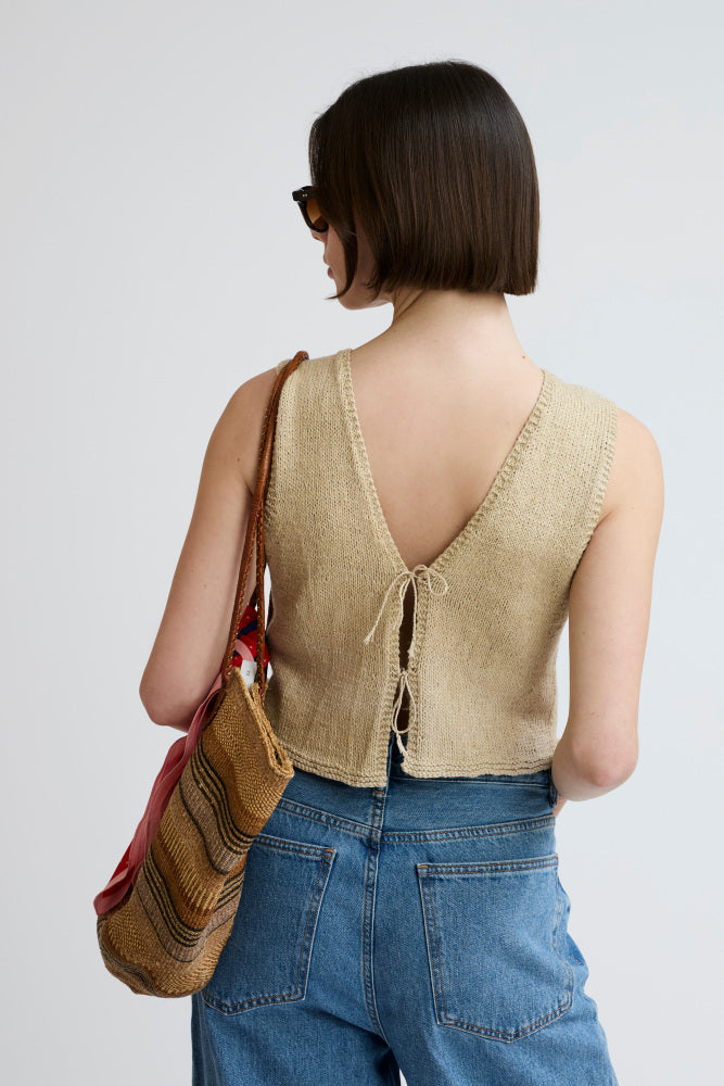 Oppdag Pisolinovesten – en lett og anvendelig knytevest i Pelini, perfekt for varme sommerdager. Strikket med enkel tråd Pelini for et luftig uttrykk, passer den like godt over badetøyet som til en sval kveld på byen.