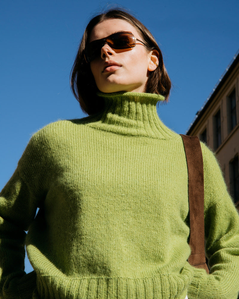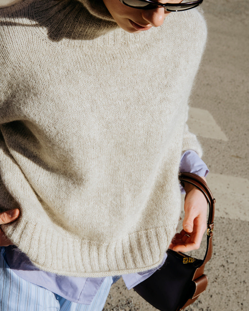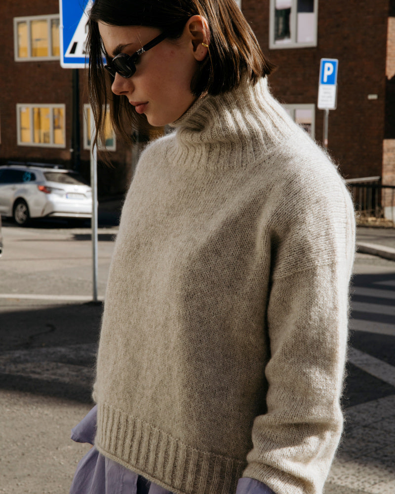 Disengenseren er skapt for å gli rett inn i strikkegarderoben din – en delikat og tidløs genser med pene detaljer og halvhøy hals. Genseren strikkes i Lamull og Plum, som gjør den lett og myk, med en pusete og luksuriøs følelse.