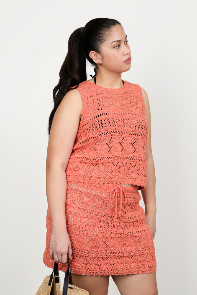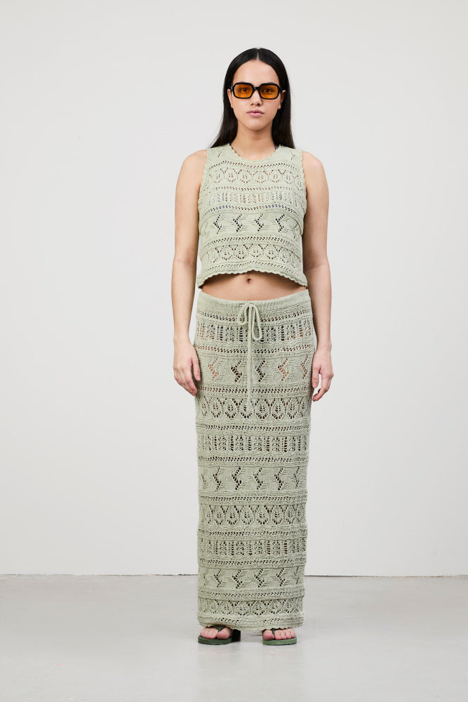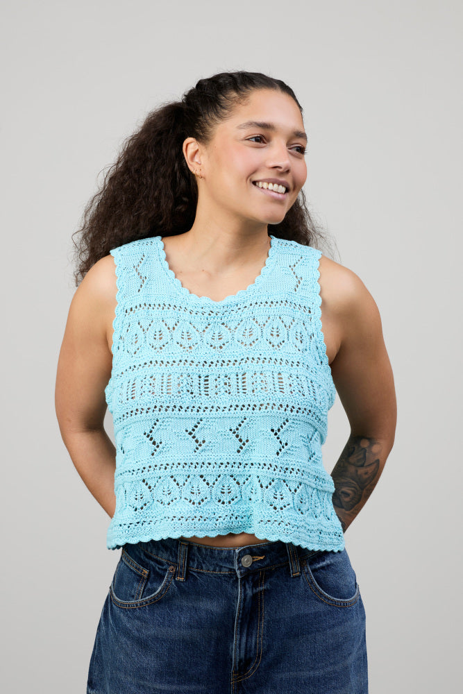 Løkkatoppen er en sommerlig blondetopp med hullmønster i border. Den har en avslappet og kort fasong med rund hals og heklede kanter, noe som gir toppen en elegant finnish. Toppen strikkes nedenfra og opp etter diagram i Pandora, laget av 100% bomull. Først strikkes bolen rundt og deretter deles arbeidet i to til for- og bakstykke. Hver del strikkes ferdig hver for seg og det felles til ermehull og til halsutringning. Skuldrene monteres sammen med madrassting. Til slutt hekles det en bølgekant rundt halskanten, ermeåpingene og langs kanten nederst.