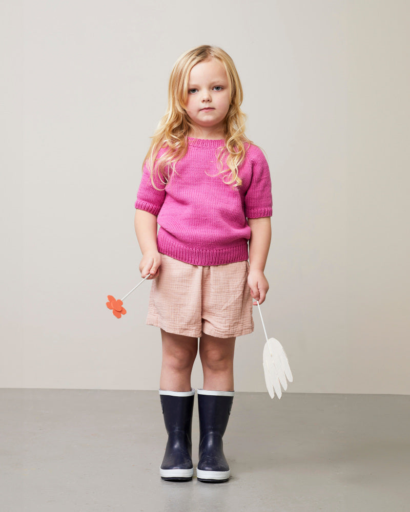 Kolleksjonen i dette heftet er strikket i Petunia og inneholder sommerplagg i livlige farger til barn i alderen 2-12 år.