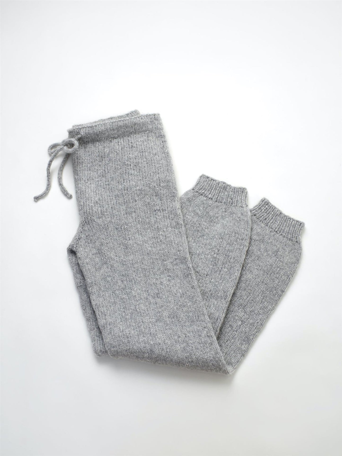 Hettegenseren og buksen er glattstrikkede og har en rett og avslappet fasong med enkle detaljer. Luen er ribbestrikket. Den har en bred brett og en deilig lengde. Plaggene passer like godt ute i påskesola med kaffe på termos, som foran peisen med påskekrim på radioen og snop på bordet.