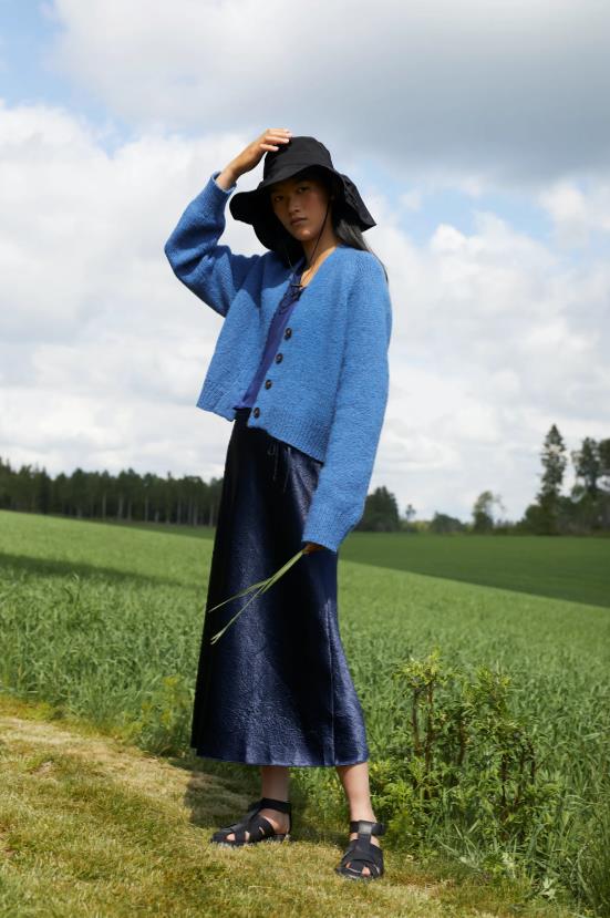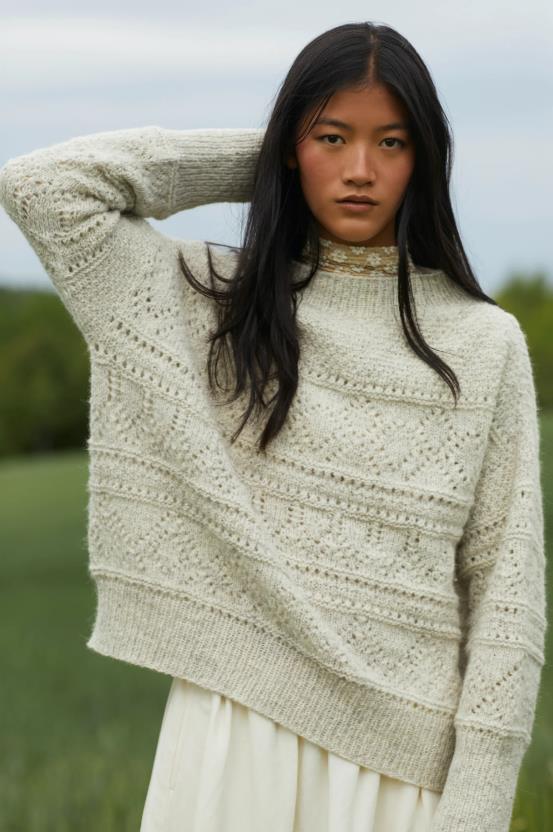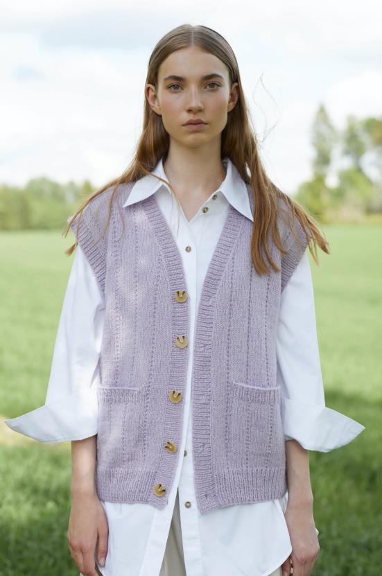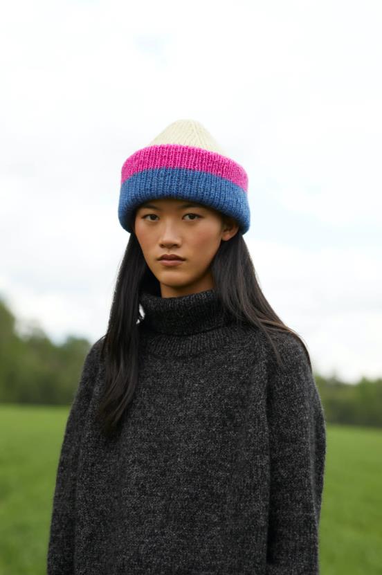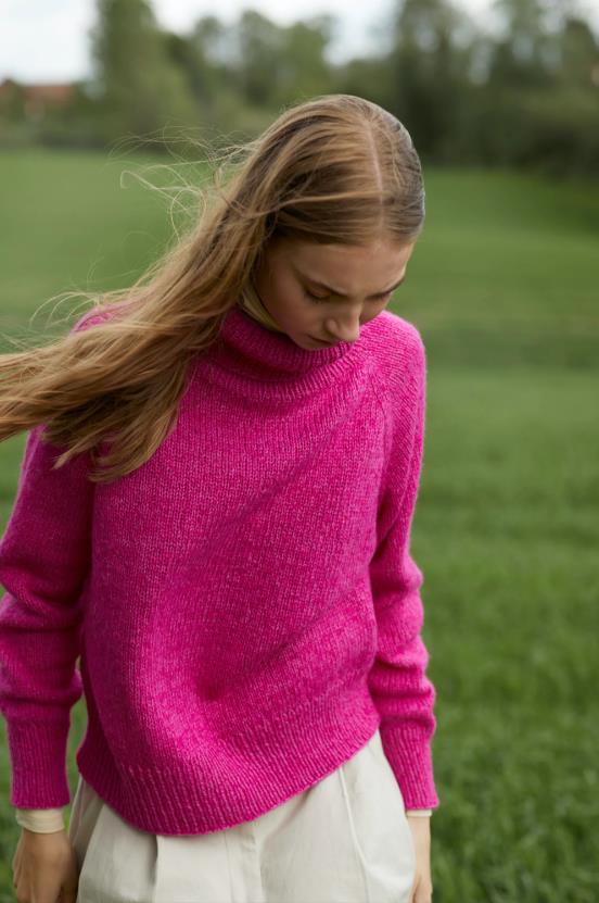 Kolleksjonen inneholder basisplagg med spennende strukturer og moderne passform. Her finner du Dilon strukturgenser, Mynte genser med border i hullmønster, Sesam raglangenser med høy hals, Mejram vest med v-hals og knapper, Vinge jakke med dobbelstrikket halskant, samt Felice ribbelue og skjerf i striper.