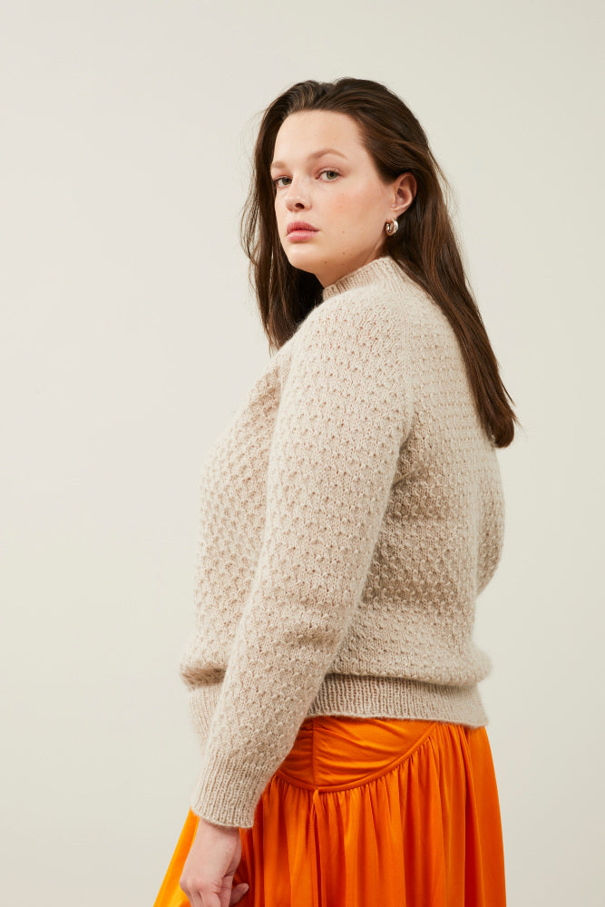 Kolleksjonen i dette heftet er vårlig, vakker og feminin. Den inneholder 6 plagg strikket i 1 tråd 3-tråds Strikkegarn sammen med 1 tråd Plum. Fargene er friske og flere av plaggene er strikket i striper som gir melerte effekter.