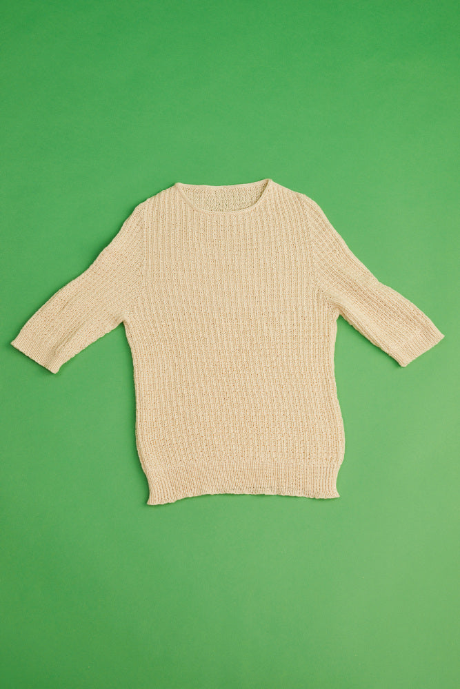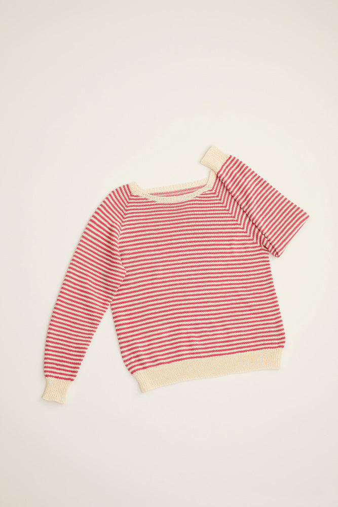 Kolleksjonen inneholder seks moderne plagg i fine strukturer, friske farger og nydelige detaljer. Her finner du Pileavest, et hullmønstret plagg med skrå skuldre, Nella raglangenser, en klassisker med rund hals og raglan, Lilje t-skjorte i strukturmønster med et delikat skulderparti, Viola t-skjorte med v-hals og krage, Flora stripegenser i to farger og Rose sommervest i glattstrikk med v-hals.