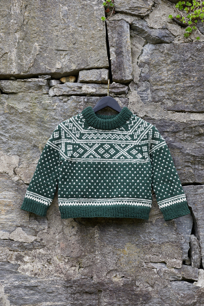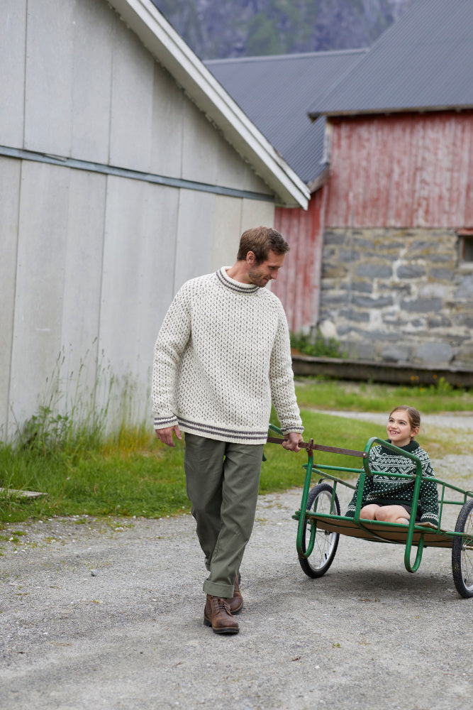 Her finner du den populære Islenderen i to versjoner; én som strikkes nedenfra og én som strikkes ovenfra. Du finner også den vakre Setesdalgenseren med sitt tradisjonelle norske mønster. På siden til høyre vises genseren til dame og herre. Til kolleksjonen har vi også laget to helt nye modeller; Ytterbakkegenser til barn og dame, og Bakkegenser til herre. Disse har et mer lekent og moderne uttrykk, samtidig som de har en fot i det tradisjonelle. Vi kaller dem Ytterbakkegenser til barn og dame, og Bakkegenser til herre.