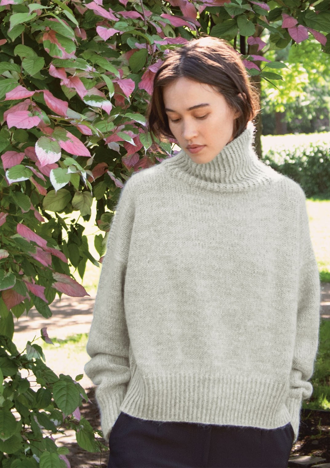 With the exception of the bags, all designs are knitted from neck down with varied techniques, constructions, knitting tension and degree of difficulty. Common for the entire collection is that it consists of good, long-lasting garments, where everything is easy to style up and down.