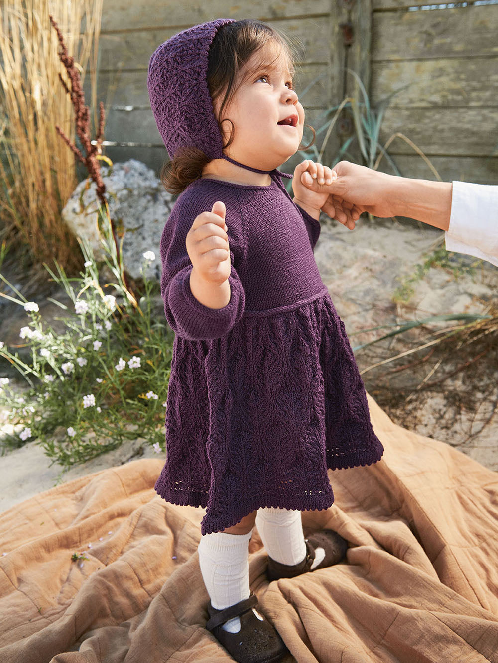 The Ivo tights w/straps have room for soft baby bellies and thighs, and at the same time have a good fit. If you knit a Loui sweater, you get the perfect rib-pattern sweater that goes with most things. Knit it in Double Sunday or Duo. Levi Booties are just as good in the pram as they are for active days in kindergarten. The Levi blanket is knitted in Double Sunday and Kos and comes in two different sizes. The smallest size fits perfectly as a pram blanket. Luma jumpsuit can be knitted in Kos or Double Sunday, with or without fold-over edges for hands and feet. Bino is a classic taken from our archive. Lovely as a set, but the clothes are also nice individually. You can knit Arlo onesie and bonnet in Alpakka Silke or Sunday. Perfect newborn clothes, but also good for older babies. The Colette dress is lovely for little ones and easier to knit than you think. It is also available for older children in collection 2211 Soft Knit for Kids. You can get fitting outfits by knitting the Helle Slipover, also available for kids and women. Helle slipover pattern for kids can be found in the 2211 collection, and for mum in collection 2210 DIY.