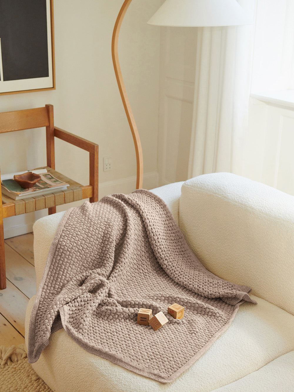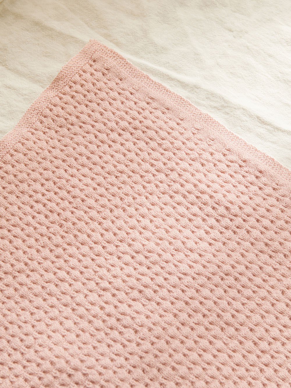 Teppet strikkes frem og tilbake med rillekanter, de øvrige maskene strikkes med mønster etter diagram.