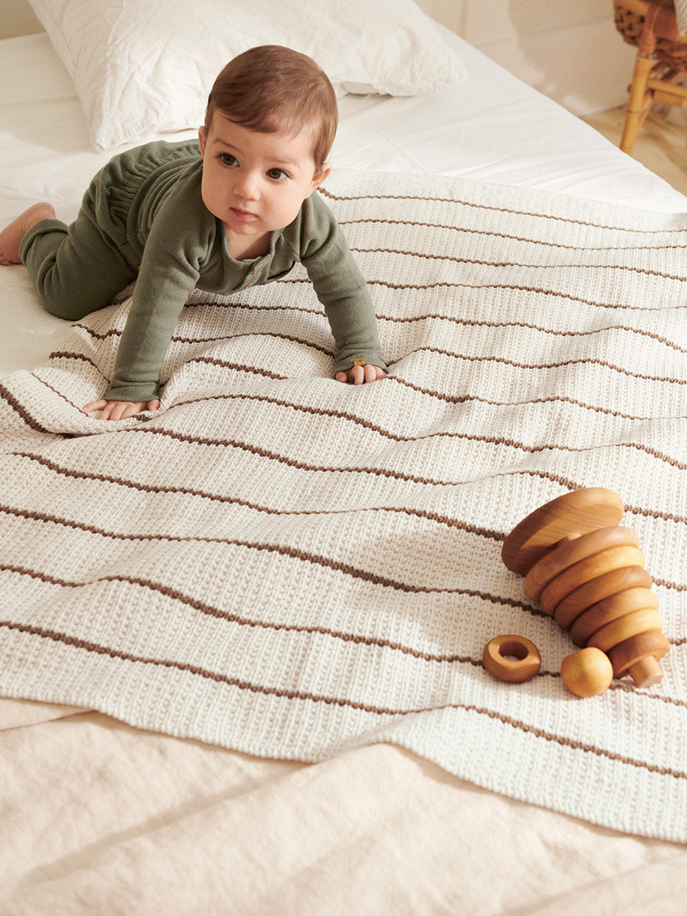 Babyteppe i perleribb, strikket med to tråder Sunday.