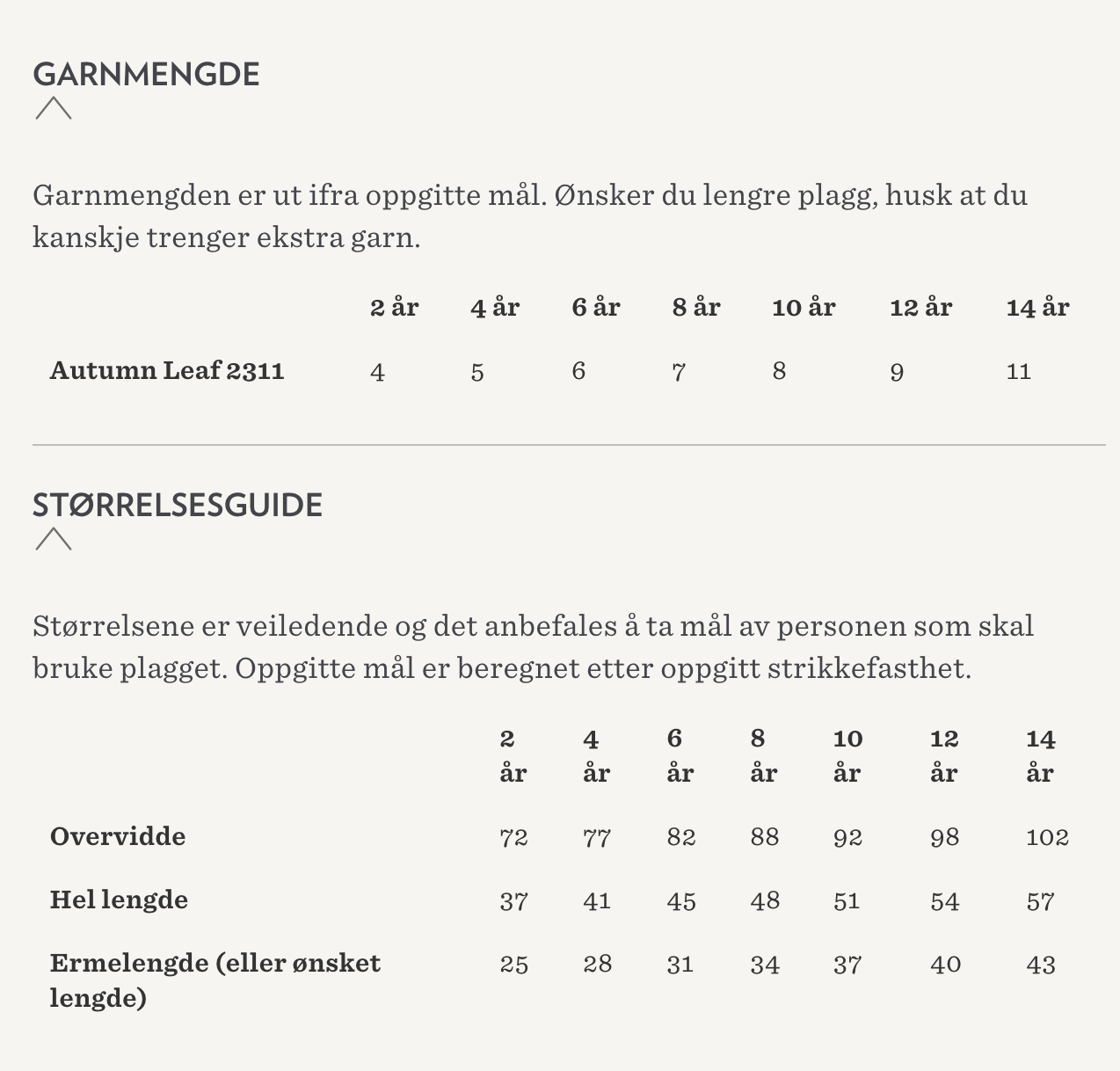 STRIKKEFASTHET: 18 masker glattstrikk på pinne nr 4½ = 10 cm