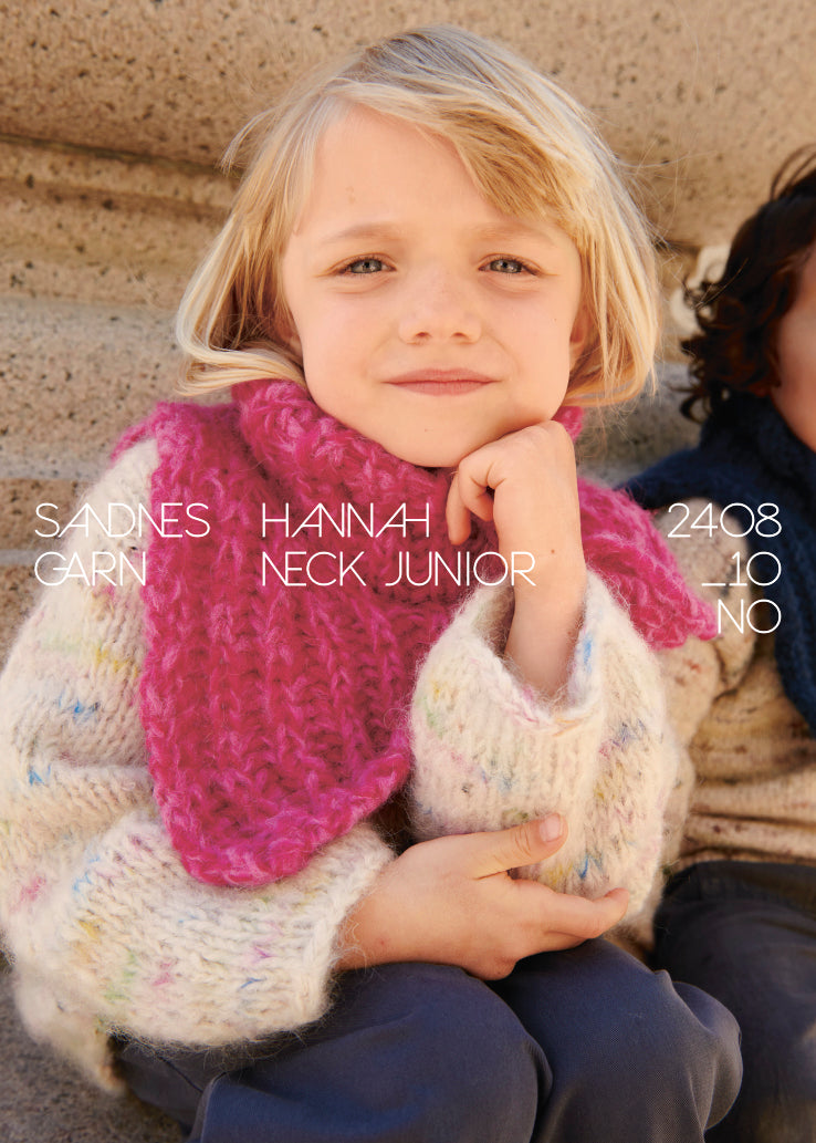 Oppskriften inneholder også oppskrift på Hannah Neck Junior i dobbel tråd Kos (Nr. 10b).