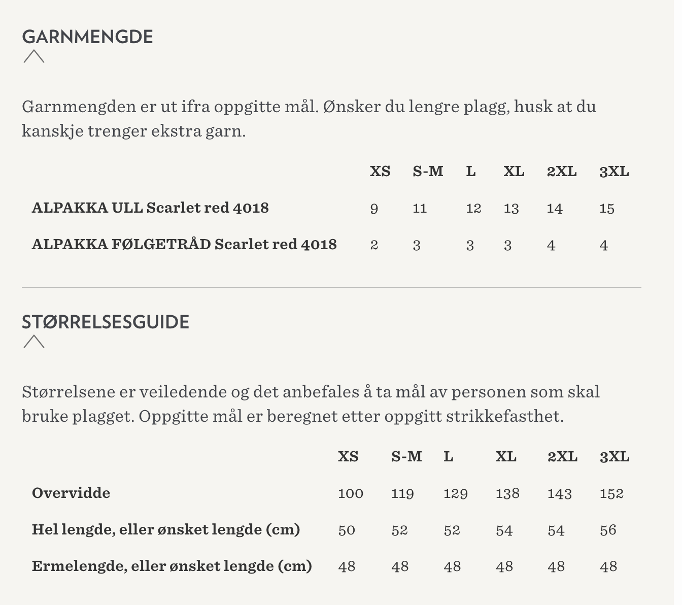 Jakken strikkes ovenfra og ned med mønster etter diagram, med 1 tråd Alpakka Ull og 1 tråd Alpakka Følgetråd.
