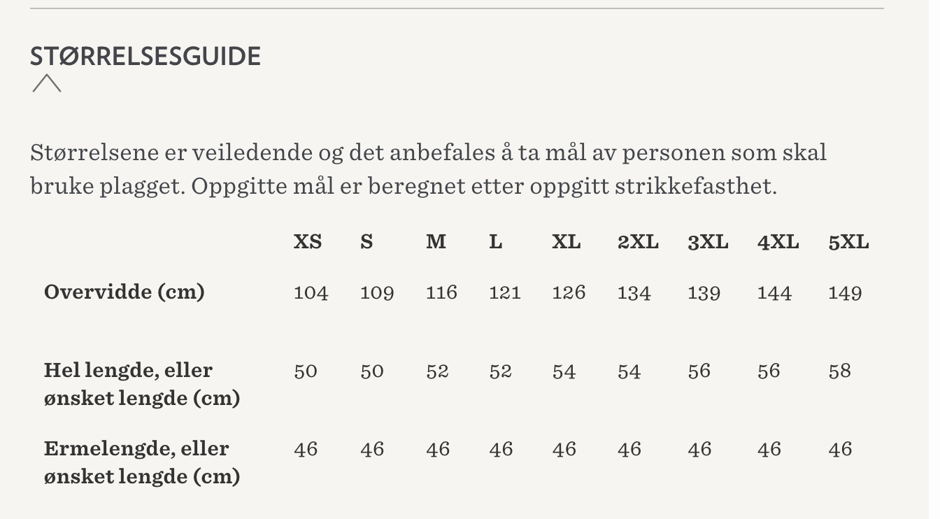 STRIKKEFASTHET: 16 masker glattstrikk med 1 tråd av hver kvalitet på pinne nr 5 = 10 cm