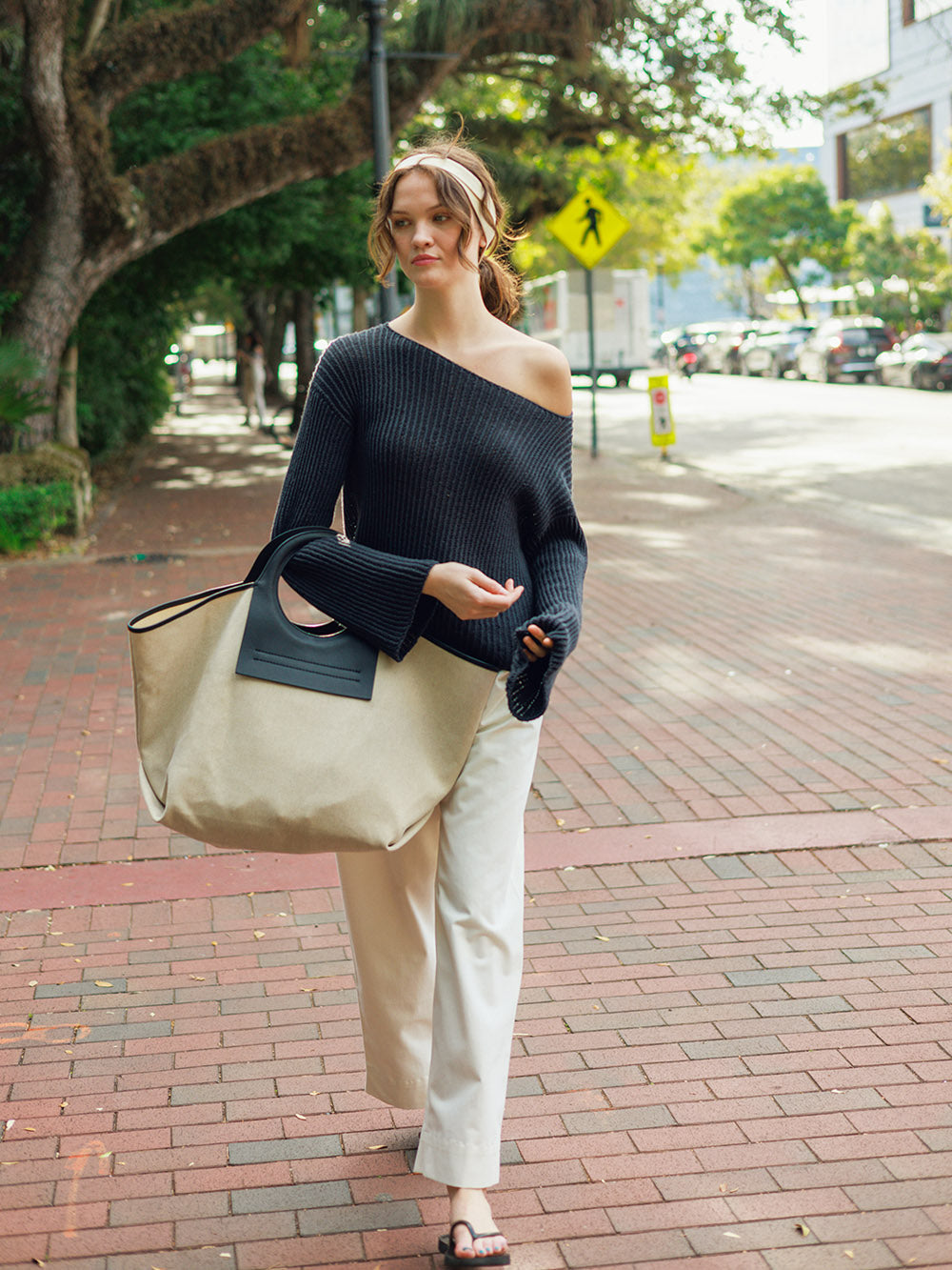 Genseren strikkes ovenfra og ned i ribb i Line.